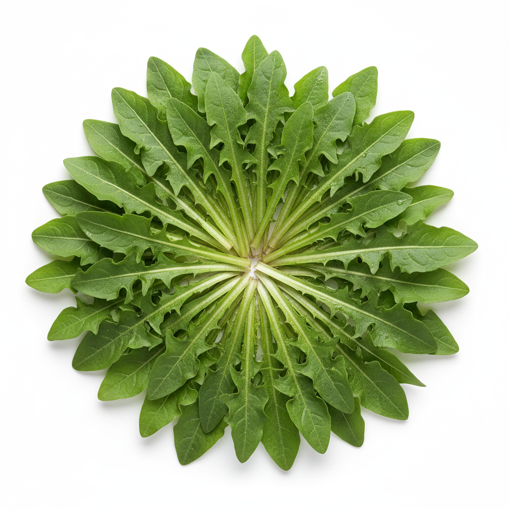 Green chicory leaves displayed on white, showing natural texture and freshness. Great for gourmet and organic categories.